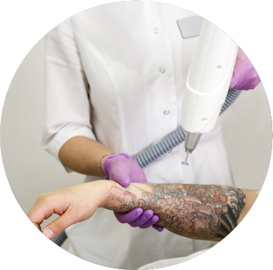 Eliminación segura de tatuajes no deseados mediante tecnología láser, fragmentando la tinta para su eliminación natural por el cuerpo.